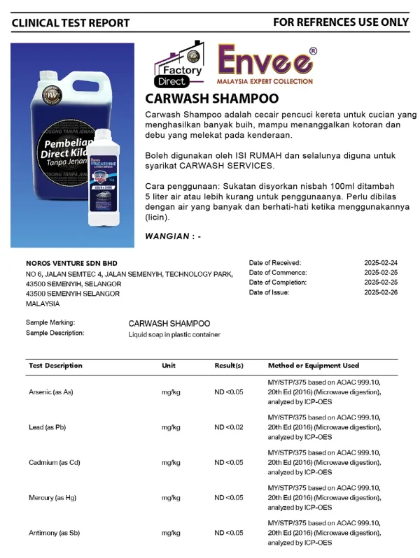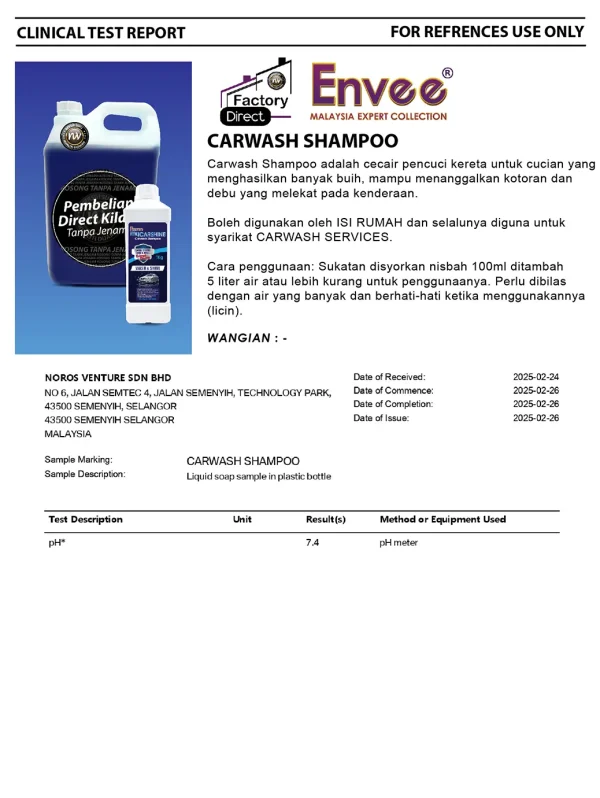 ENVEE Carwash Shampoo is a car wash liquid that produces a lot of foam, capable of removing dirt and dust attached to vehicles.